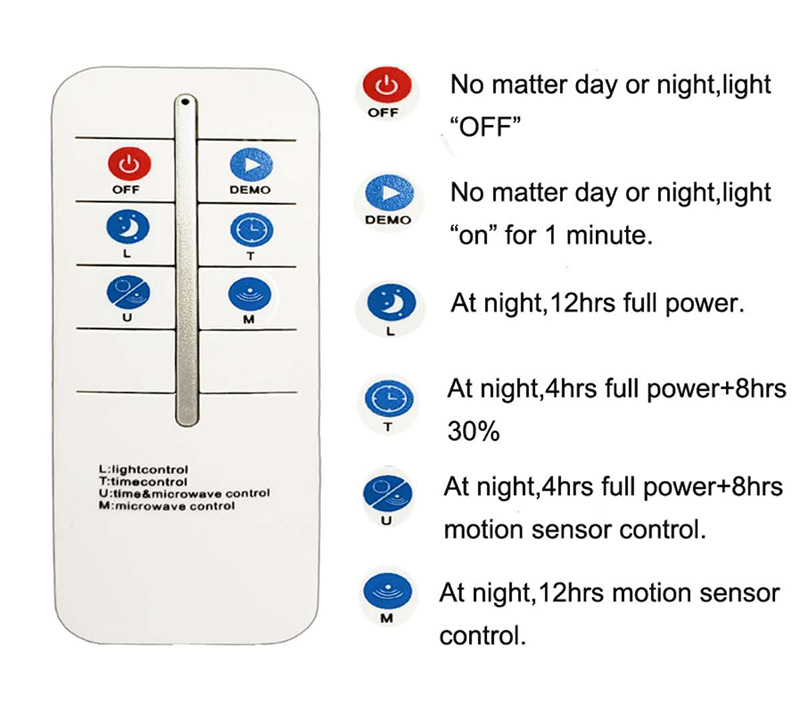 - Synhwyrydd nos + Synhwyrydd symudiad microdon + Rheolaeth Anghysbell