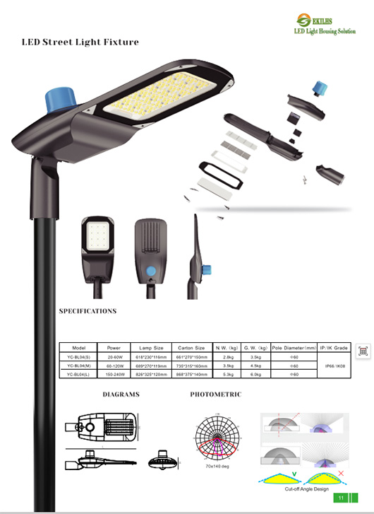 | EK-BL04(L) | 826*325*120 | 150w-240w (post lamp 60mm) |