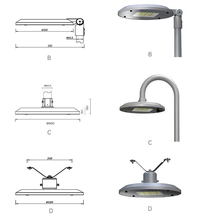 | Maint Tai (mm) | Φ500*500*450 | Φ500*500*168 | Φ500*500*139 | Φ500*500*286 | Corff alwminiwm, gwydr arfog, Modrwy Rwber Dal-ddŵr, sgriwiau 304 s/s, |